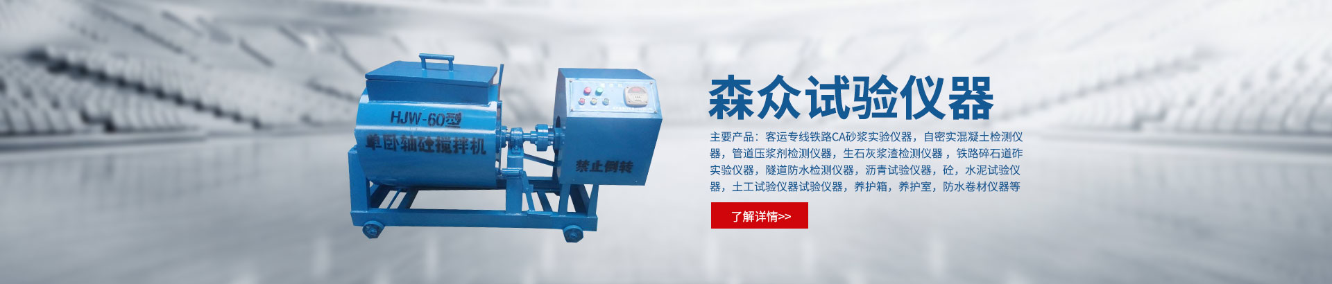 完善的售后服務(wù)體系滄州森眾試驗儀器有限公司是目前國內(nèi)生產(chǎn)公路試驗儀器、建筑試驗儀器的重點骨干企業(yè)。在國內(nèi)具有較高的度,檢測手段完善,技術(shù)力量雄厚。產(chǎn)品嚴格按照,國家標準設(shè)計生產(chǎn),多次在國家重點工程中標。除配套供應試驗儀器設(shè)備外,我公司還承擔新建試驗室的規(guī)劃設(shè)計,設(shè)備選型,安裝調(diào)試,配件供應與后勤保障等業(yè)務(wù)。主要產(chǎn)品:客運專線鐵路CA砂漿實驗儀器,自密實混凝土檢測儀器,管道壓漿劑檢測儀器,生石灰漿渣檢測儀器,鐵路碎石...